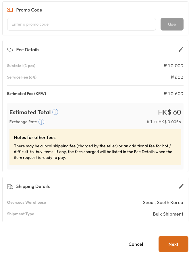 After selecting corresponding warehouse, click on “Request An Item”. Use Korean proxy shopping as an example.