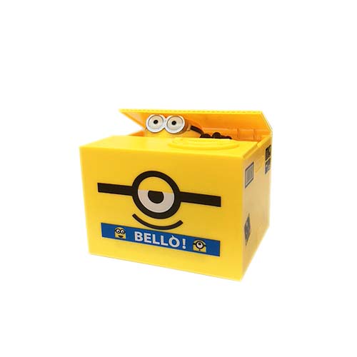 Saving money can be a lot of fun. Little did we know that our best minion friend Bob Stewart can help us save money too! All you need to do is place a coin on top of the box, press a button, and watch your minion pop out of the box and steal your coin away.