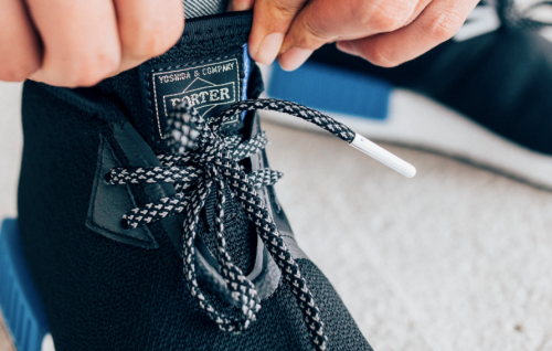 The crossover of two iconic brands are bound to create yet another heating trend this summer. As Porter x Adidas Originals brings us the one of a kind black and blue NMD_C1 Chukka shoe, helmet style backpack, and waist bags, all embroidered with the iconic ‘3 stripes’ logo.