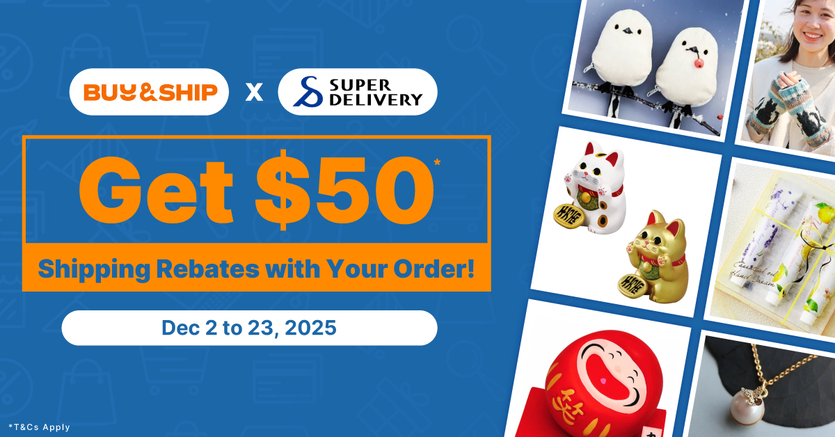 | How to Join | Simply place an order on the Super Delivery Japan site during the promotion period and ship it to the Buy&Ship Japan warehouse address for forwarding to Malaysia to receive an $50 shipping rebate. |