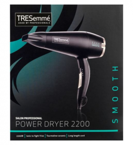 Inspired by the salon, the TRESemme Power Dryer 2200 delivers top quality performance for fast drying and effortless styling. Featuring a powerful 2200 W fan and ionic conditioning technology, this hair dryer gives a penetrating air flow with a high shine finish.