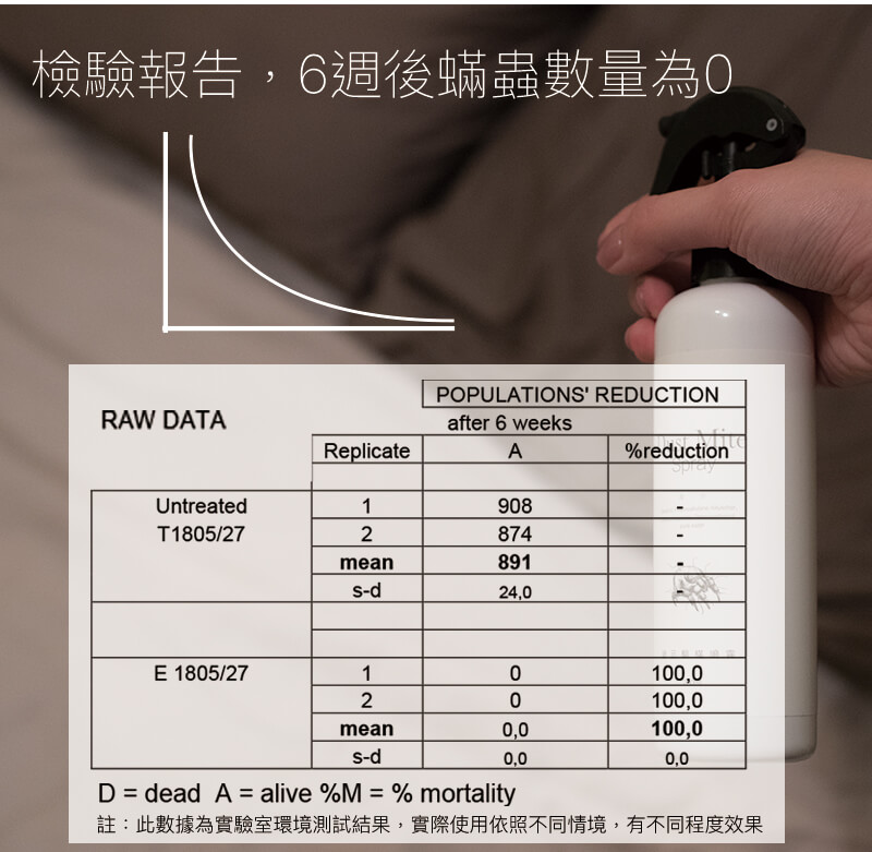 呢枝噴霧經檢驗證實係99%有效抑制塵蟎生長,而且用天然植萃,趕走塵蟎👋🏻。利用塵蟎相剋嘅植物萃取,提煉出蟎蟲討厭嘅氣味😏,以有效趨避並抑制蟎蟲生殖,當中不含任何西藥同殺蟲劑,連台灣兒童過敏免疫專科醫生楊樹文👨⚕️都推薦使用。