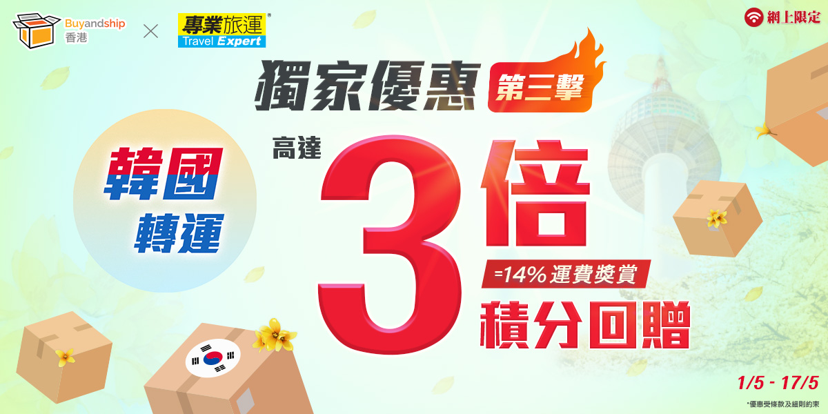 去完日本未夠喉想再買多啲日本嘢返屋企?韓國嘅化妝品同衫褲鞋襪咁抵買,唔買多啲又點對得住自己?未有時間飛多轉但又想入貨嘅話,Buyandship 就幫到大家喇,只要喺活動期間轉運日本或韓國貨件達 5 磅即有 2 倍積分回贈,夠 10 磅或以上仲送夠 3 倍,計落等於運費 86 折!