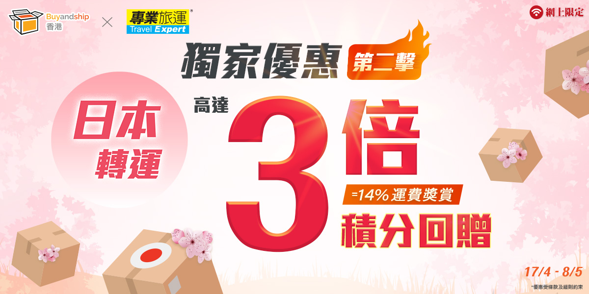 用專業旅運獨家推廣碼「TEXPERT」註冊成為 Buyandship 新會員仲會即送 $20 運費,夠您轉運差唔多 1 磅海外產品。網購買嘢抵咁多,慳埋夠您飛返轉!